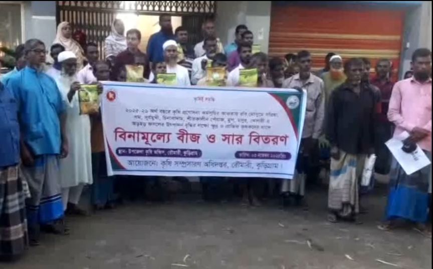 রৌমারীতে কৃষকদের মাঝে বিনামূল্যে সার ও বীজ বিতরণ