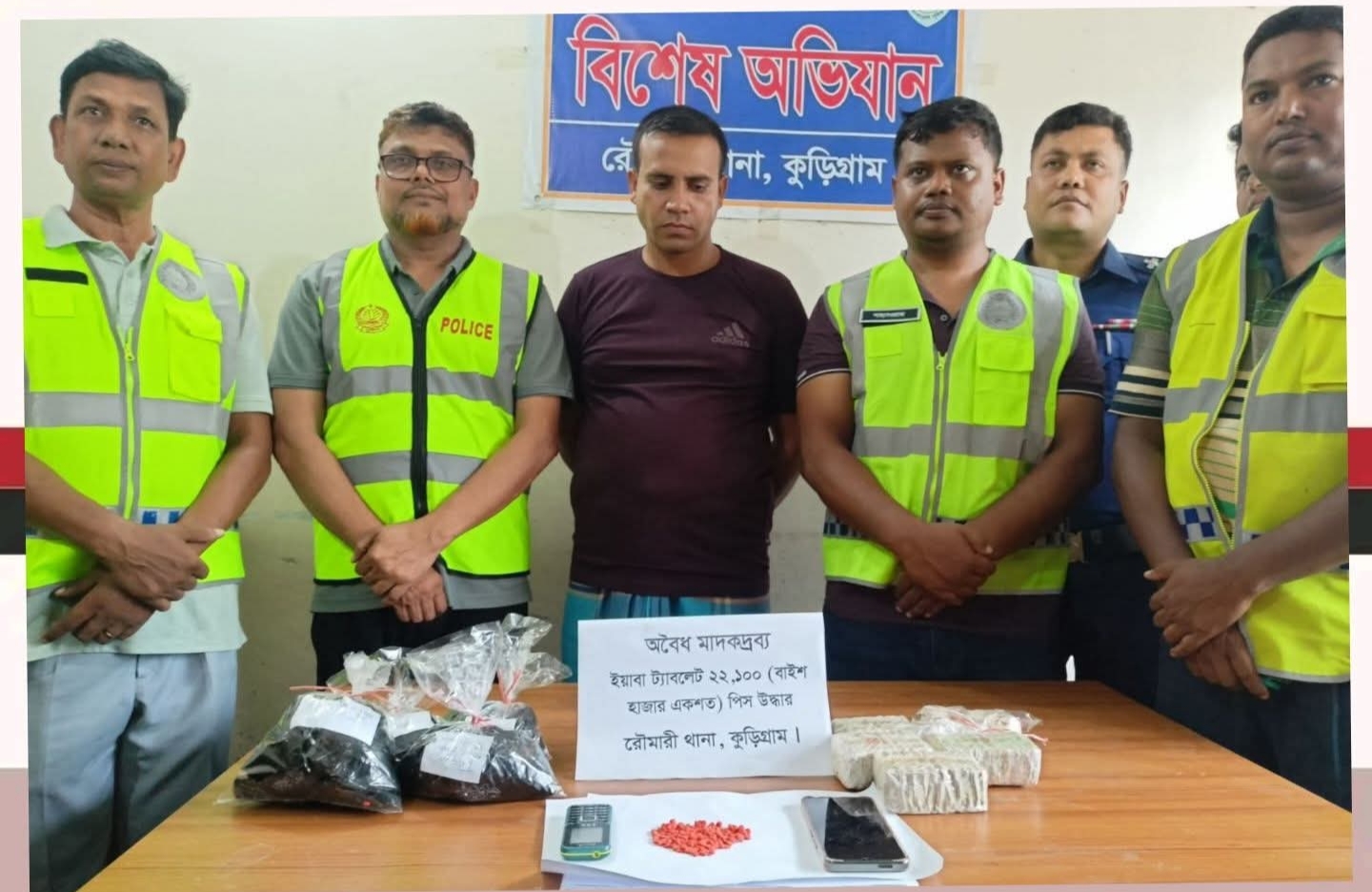 রৌমারীতে ২২ হাজার পিস ইয়াবাসহ মাদক কারবারি গ্রেফতার