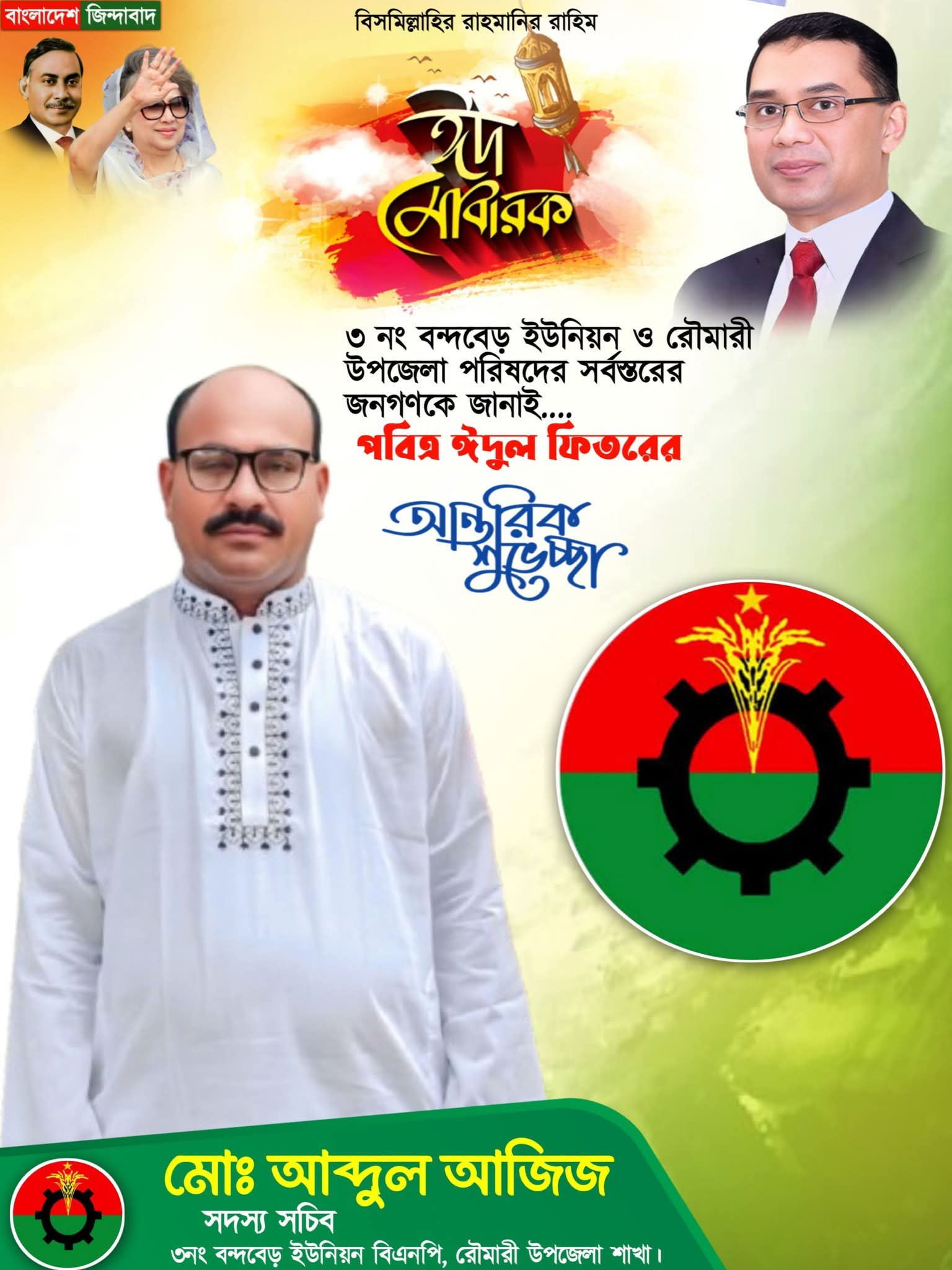 দেশবাসীসহ বন্দবেড় ইউনিয়ন বাসীকে ঈদের অগ্রীম শুভেচ্ছা জানিয়েছেন আব্দুল আজিজ
