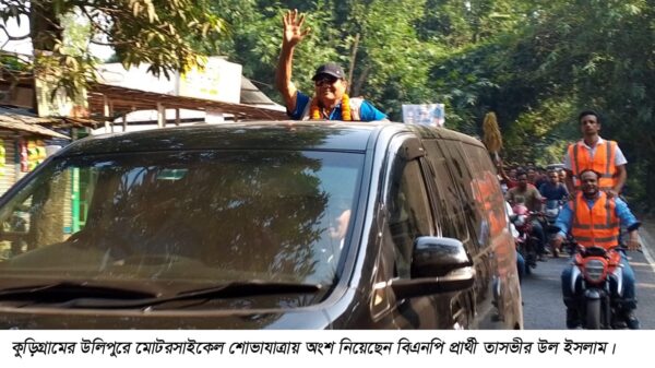 উলিপুরে মোটরসাইকেলে শোডাউনের মাধ্যমে বিএনপি প্রার্থীর প্রচারনা শুরু