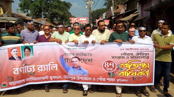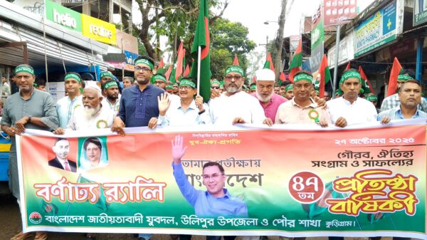 কুড়িগ্রাম প্রতিনিধিঃ কুড়িগ্রামের উলিপুরে নানা আয়োজনে উৎসবমুখর পরিবেশে পালিত হয়েছে জাতীয়তাবাদী যুবদলের ৪৭ তম প্রতিষ্ঠাবার্ষিকী। মঙ্গলবার (২৮ অক্টোবর) দুপুরে উলিপুর কেন্দ্রীয় শহীদ মিনার চত্বর থেকে একটি বর্ণাঢ্য র্যালি বের হয়ে